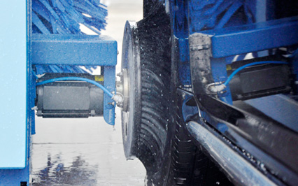 進口意大利塑玻絲輪刷,根據(jù)光電開關感應判斷車身位置,輪刷啟動至輪轂位置,開始清洗,正反旋轉刷洗輪轂,電腦洗車機全程電腦全自動控制輪刷伸縮。